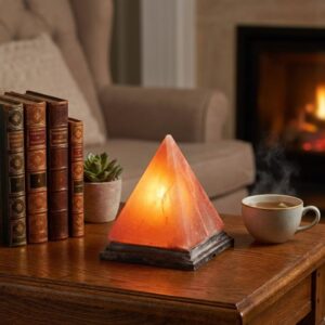 Pyramid Shape | Natural Himalayan Pink Salt Lamp with Wooden Base