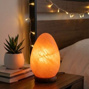 Hand-Carved Himalayan Pink Salt Egg Lamp with Wooden Base