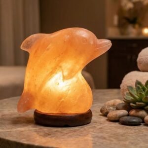 Hand-Carved Dolphin Himalayan Salt Lamp on Wooden Base